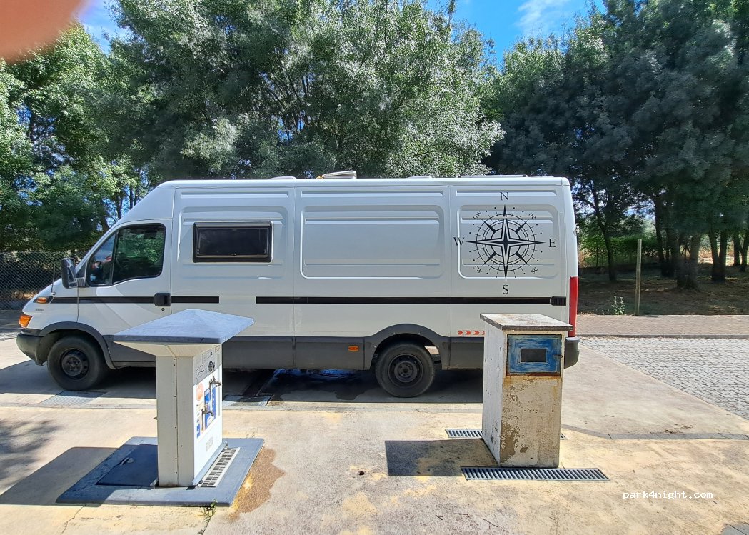 Super endroit pour bivouaquer où les emplacements sont spacieux et certain à l'ombre. Les vidanges des eaux usées et de la cassette sont propres et gratuites. Pas d'électricité.Les sanitaires et douches sont propres et situés à proximité. La jolie plage fluviale est jolie mais le niveau de l'eau est à la baisse, l'accueil du snack-bar est super. Merci à la municipalité et bon séjour au Portugal.