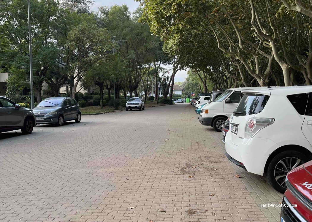 Très bel endroit avec beaucoup d'ombre pour se poser ou pour dormir. Nous avons passé une nuit tranquille. Il y a un parc juste à côté avec beaucoup de promeneurs le dimanche, un terrain de tennis et des jeux pour enfants. L'entrée est très facile, la sortie un peu moins car la rue a des voitures de chaque côté et des arbres qui peuvent gêner. Il vaut mieux sortir dans les rues suivantes.