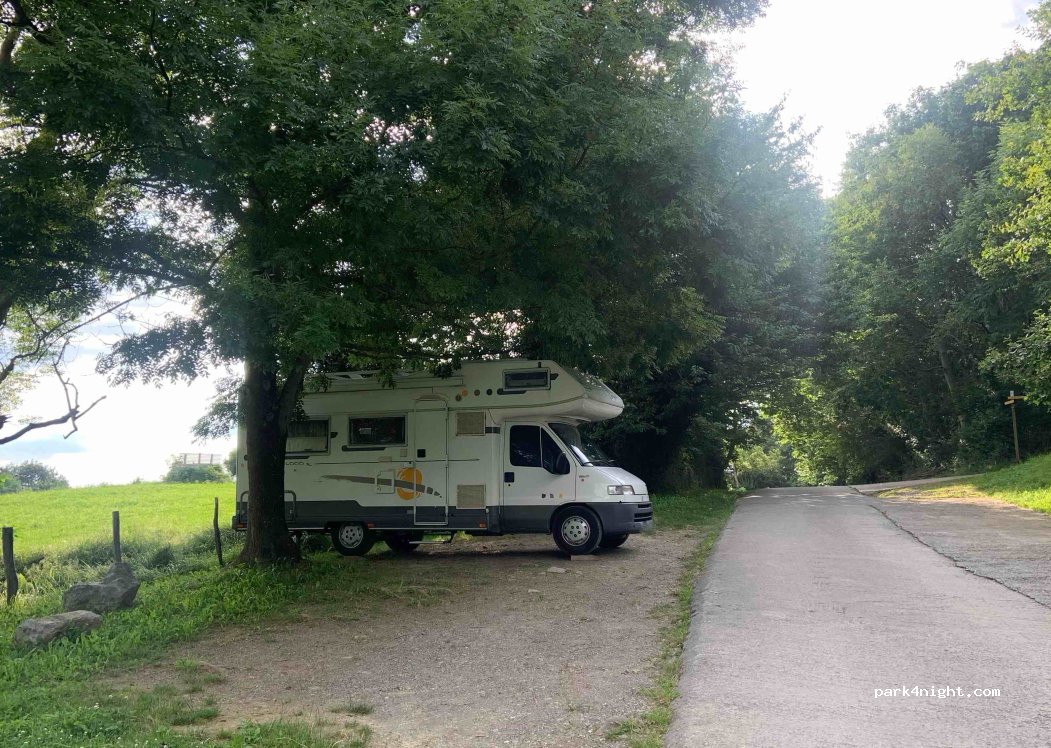 Nous avons pu y stationner avec notre van. Nos filles ont apprécié l’air de jeux. Quelques passages (voitures et piétons) ainsi que des jeunes un peu bruyants mais tous sont partis à une heure raisonnable donc nuit calme.