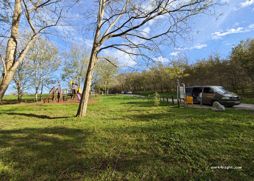 Petit parking sympa , avec air de jeu pour enfants et table de picnic. endroit ou des familles espagnole sont venus manger. nous avons passé une nuit calme et sans moustique.