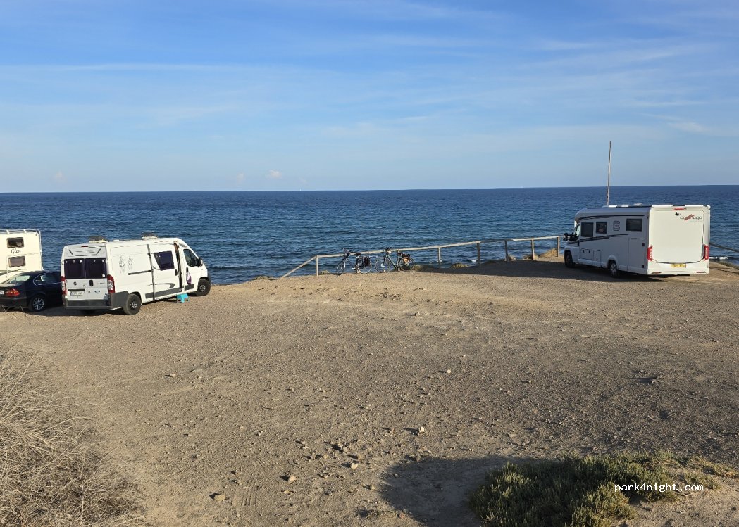 Hemos dormido unas 10 autocaravanas sin problema. Ha pasado la guardia civil y no han dicho nada. Sopla bastante el viento. Encima de la playa y a menos de 5 minutos de restaurantes.