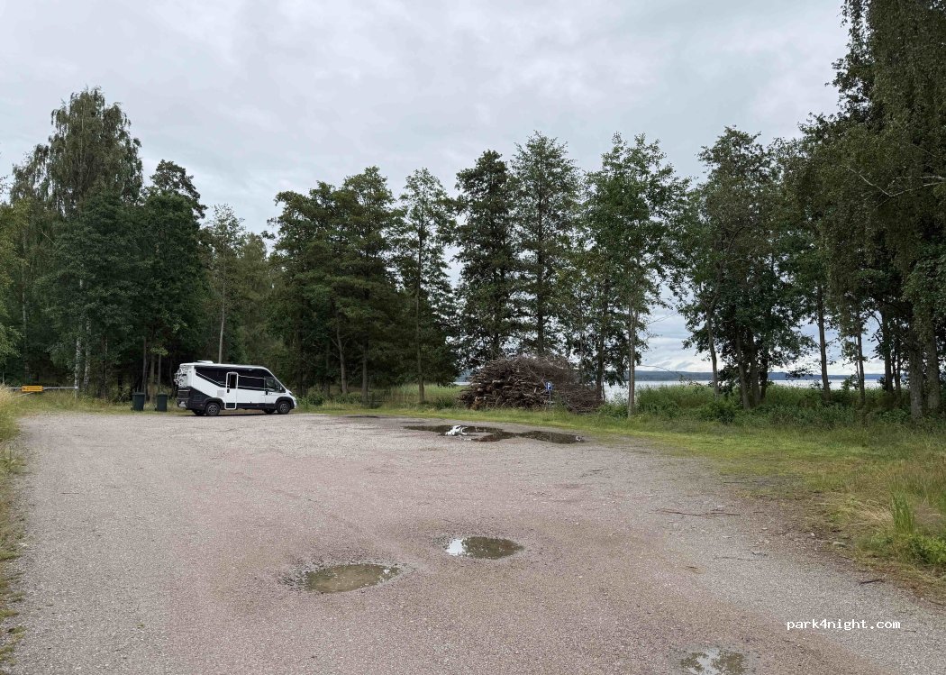 Just parking along the road, but quiet during night. Beach, tables, BBC and dry toilet nearby.