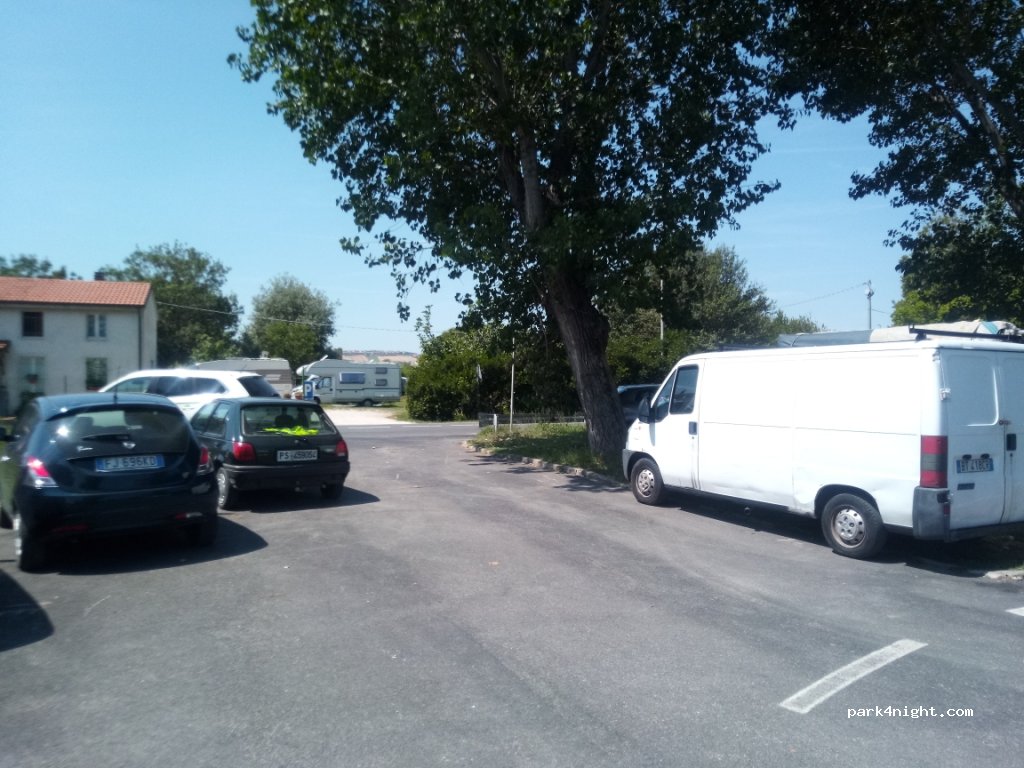 Simple parking but if you go accross the street you will find Daniel starting something very nice for campers. He has a green space with electricity and water and he will give you a very warm and friendly welcome. The place is not free but it also includes 2 sunbeds and 1 umbrella at the beach wich is very near. This stop is a must if you are around Ponte Sasso. We highly recommend.Thanks Daniel!