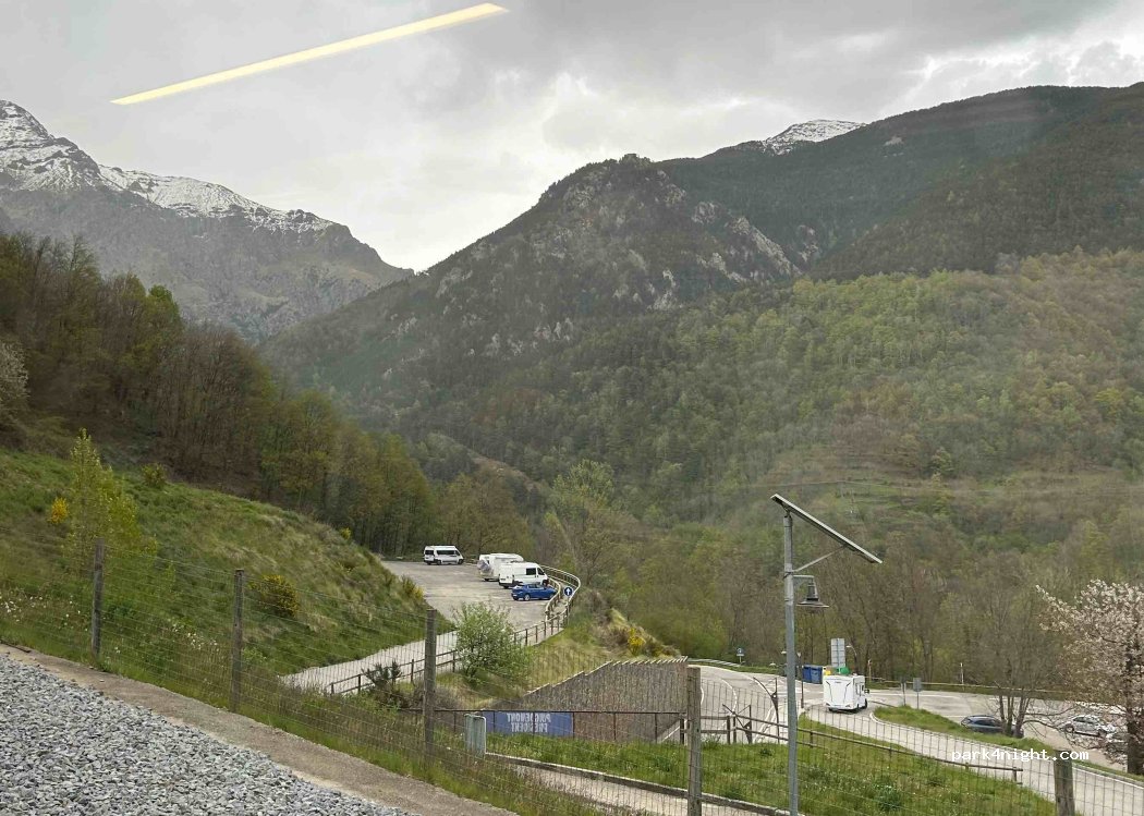 Un spot sans prétention mais fort agréable après une virée au Vall de Nuria en train à crémaillère (un peu cher mais ça vaut le coup, surtout pour les fans de randonnée). Préférez les places du parking situé en contrebas, plus discrètes. Jolie vue, poubelles sur place et petite épicerie authentique dans le village (avec du pain et des viennoiseries notamment)