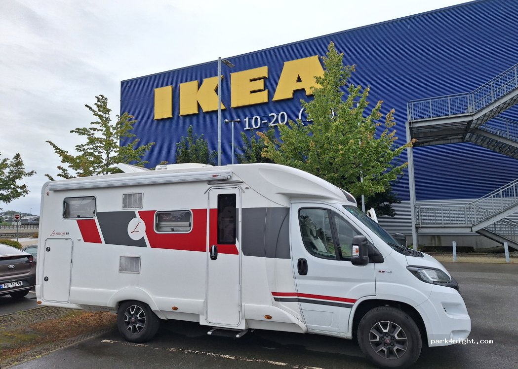 Une nuit chez IKEA est tout à fait correcte et expressément autorisée hors saison entre 21h00 et 8h00. Nous sommes allés faire du shopping et nous nous sommes tenus sur le petit parking latéral.
