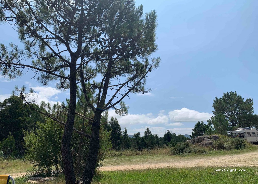 Estupendo lugar entre pinos, muy tranquilo (17/09), apenas 7 Campers. A 3 minutos de la playa. Apta para perros desde las 22h hasta las 11h. Amplio, sin problema nuestro camión de 7m.
