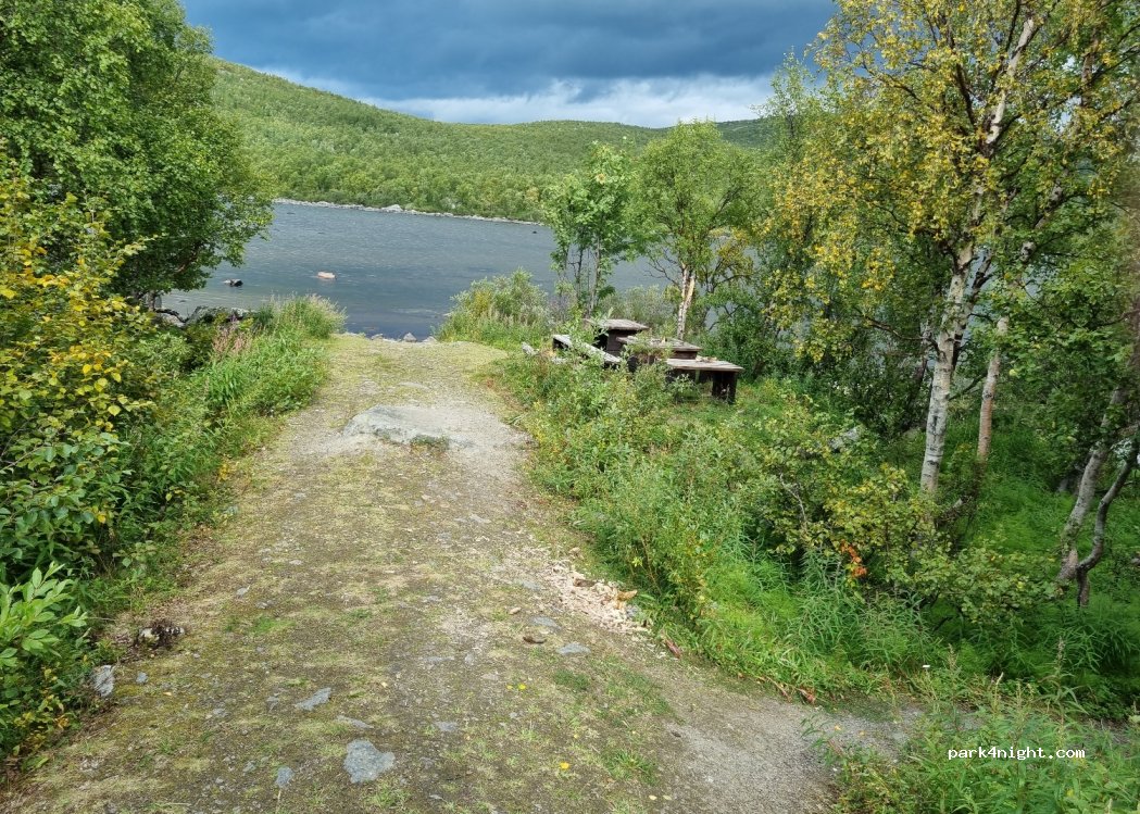 Guter Platz für eine Nacht. Straße etwas laut aber nicht so tragisch. Trockenklo und Mülltonne vorhanden. Am Wasser liegen Boote, wahrscheinlich im Sommer mehr Betrieb durch Angler. Grillplätze am Ufer und ein kleines Haus mit Tischen und Bänken als Aufenthaltsraum für Abends oder schlechtem Wetter, nicht für Übernachtung. Guter Platz für Polarlichter. Mülltonnen wurden morgens geleert, hängt wahrscheinlich ab wann man da ist.