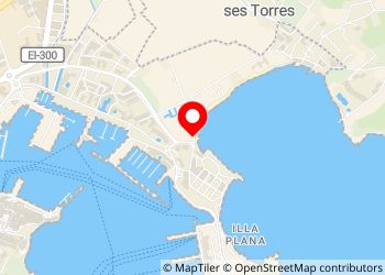 Kostenlose Parkplätze vor dem Strand von Talamanca mit schöner Aussicht, siehe Foto. Ideal von der Fähre kommend und im Morgengrauen ankommend, es ist 1 Minute vom Ausgang des Hafens entfernt.