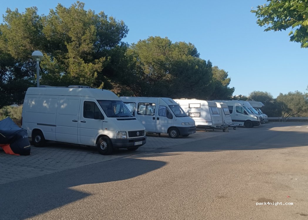 Quiet parking for sleeping and walking, less than 10 minutes, to the center of Ciutadella. It has no services. There is a grass park next to the car park.