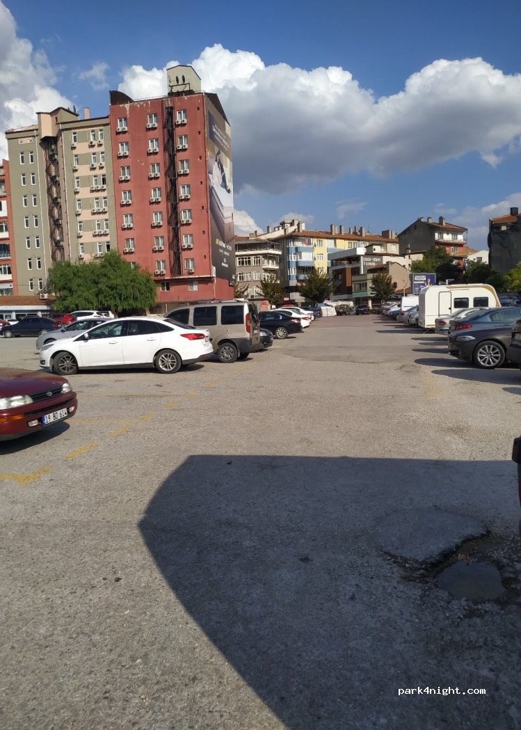 büyük park alanı. ucretsiz. hemen karşısında AVM nin yanında daha büyük park alanı var 24 saati 10 TL yaziyor her iki parkta da elektrik su yok. WC ihtiyacı için AVM yi kullanabilirsiniz . şehir merkezine yakin