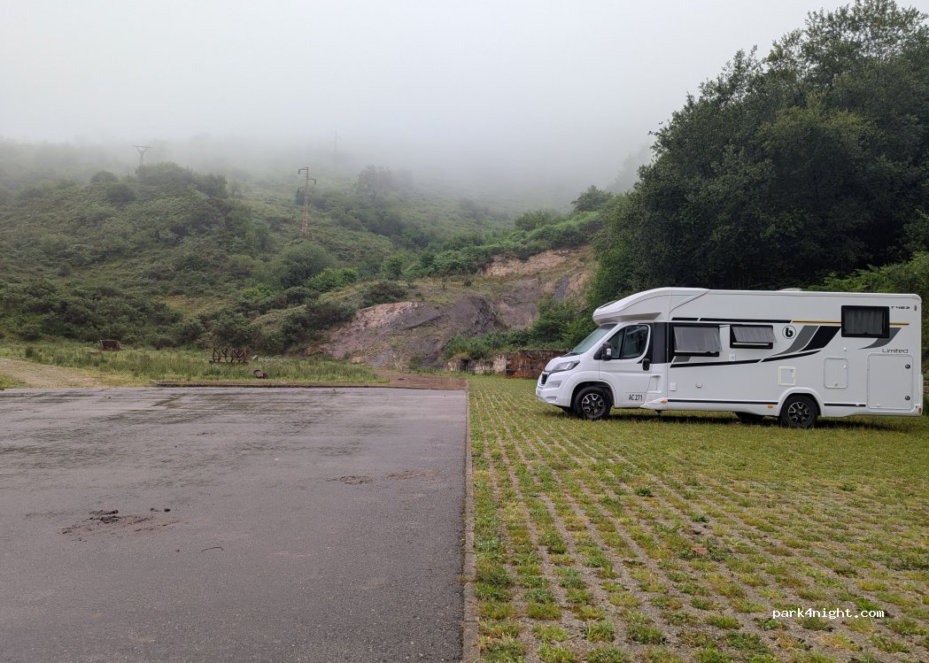 Parking perfecto para hacer noche y levantarse a hacer la vía ferrata(visita minera) no hay servicios... pero muy tranquilo. No hay contenedores, ni papeleras...