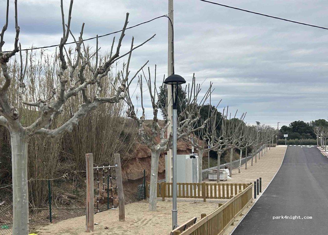 Parking with shade, play area next to it with fountain, ideal for a stopover to eat.