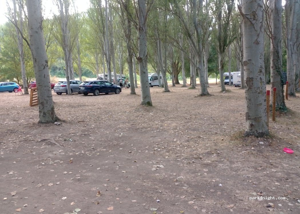 zona habilitada para la aparcar y pernoctar. El coste de 8€ me parece caro, para lo que dan, pero ya casi todo es así. zona tranquila, con sombra, baños decentes, chiringuito abierto en verano, zona de baño, y muy cerca del pueblo. La chica de la entrada, nos dijo que no se pueden sacar sillas ni mesas,pero luego la gente hacia lo que le daba la gana. Se puede reservar la plaza por internet