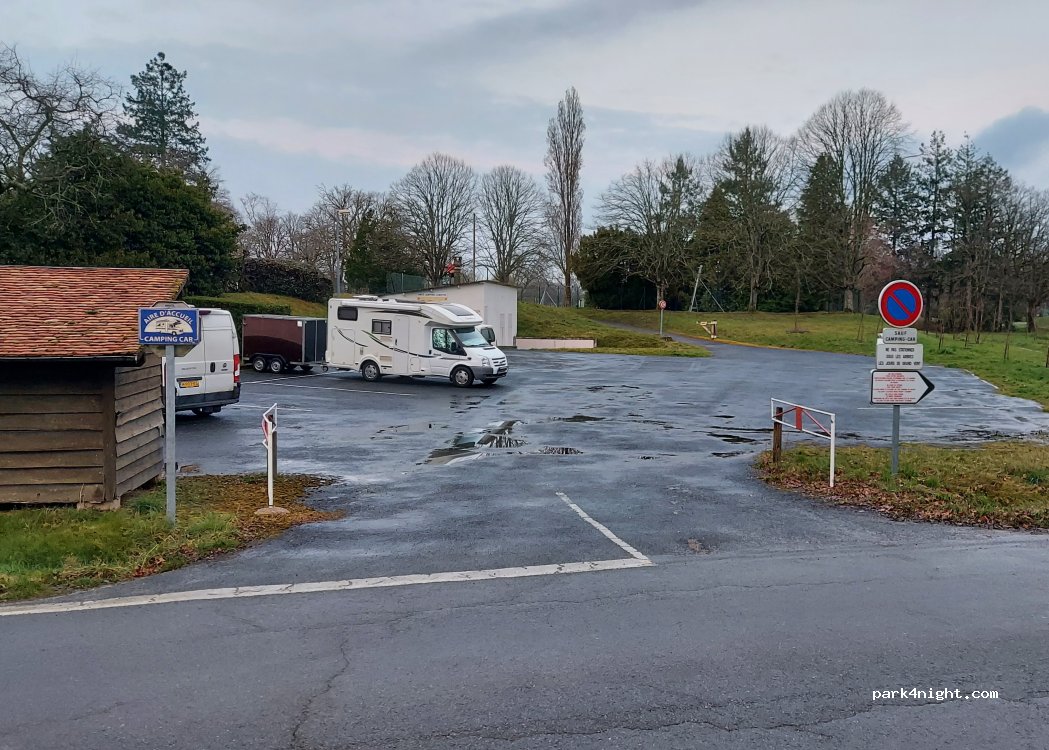 Aire avec parking nuit très calme, centre ville à 900 m, piscine à 300 m, jeux pour enfants, promenade à faire autour des étangs. MISE A JOUR 2022 : Après travaux (abattage des arbres), l’aire est de nouveau ouverte.