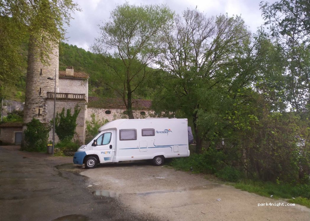 Kleiner Parkplatz vor Cahors, mit herrlicher Aussicht! Neben einem Schloss ertönt das Geräusch von Wasserwiegen. 1 km vom Stadtzentrum entfernt. Keine Schranke, kein Nachtruheverbot, am Straßenrand mit wenig Durchgang. Einfach perfekt!