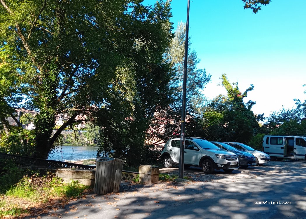 Parking accessible aux campings cars courts, très bien en journée car proximité du Lot et du centre ville. Mais très bruyant la nuit, une bousculade sur le fourgon nous a aussi réveillé et le matin nous avons constaté que la carrosserie était abîmée. Nous n'avons fait qu'une nuit !