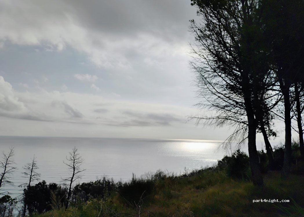 Einfaches Parken, Sackgasse, neben Naturschutzgebiet. Schatten von Bäumen. Gut für die Nacht, sehr ruhig und perfekt für einen morgendlichen Spaziergang / Frühstück in der Natur. Keine Bar oder andere Einrichtungen. Wenn man die Straße bis zum Ende durchfährt kommt noch eine kleine Parkbucht mit guter Aussicht aufs Meer.