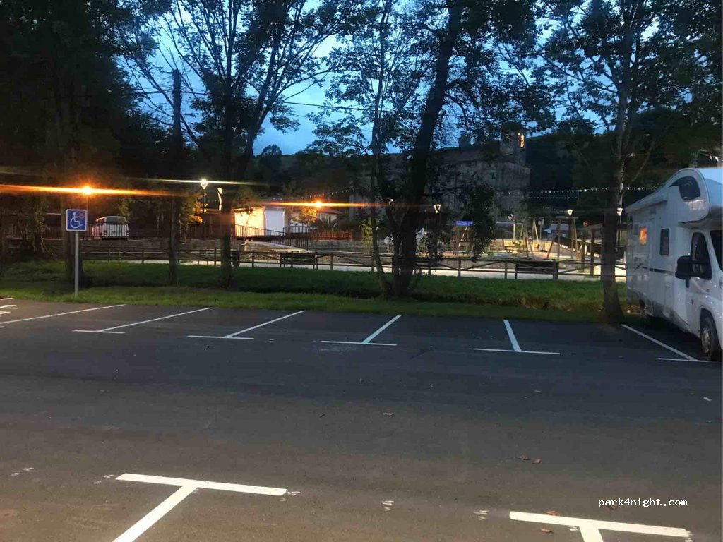 Parking tranquilo y seguro para pernoctar. No tiene servicios. Parque nuevo al lado y con tirolina. Viajabamos con furgoneta camper de 6 metros. Tal vez no apta para vehiculos con mas largura. Volveremos.
