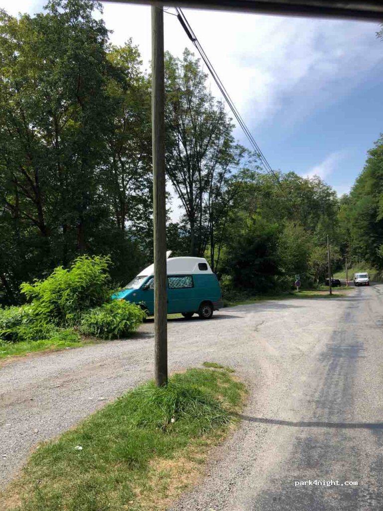 Long lay-by and roadside bays that are large and free of charge. Easy walk into Lourdes. We didn’t stay the night as the campsite nearby is lovely and cheap, but others did stay there. I imagine there’d be a little noise if trying to sleep as it is roadside although shaded and pleasant.