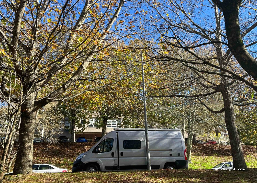 Parked up during the day to walk in to Santiago which was straightforward 20 mins. Very busy during the week with University users as you would expect. Safe and convenient but wouldn't want to try and park a motorhome over 6.5m here!