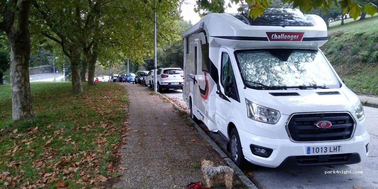 Free parking ideal for visiting the city of Santiago de Compostela. Very quiet, easy to find places unlike the area next door. We did not spend the night there but it seems possible if there is no prohibition sign about 1 km on foot from the cathedral.