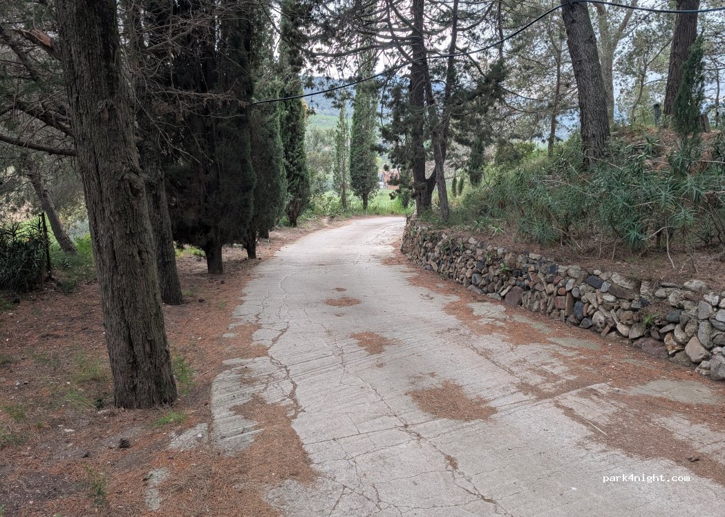 Slept here for 2 nights. Easy walk to town with 2 small shops. Very quiet. Locals also come here to relax, picnic, youngsters hang out infront of the church keeping peaceful and to themselfs. It is a 'junction' for the small farmers going to their pieces of land, a few times a car passes by towards their land. The road up is steep, branches hanging over - 3m hight you will be brushed a bit.
