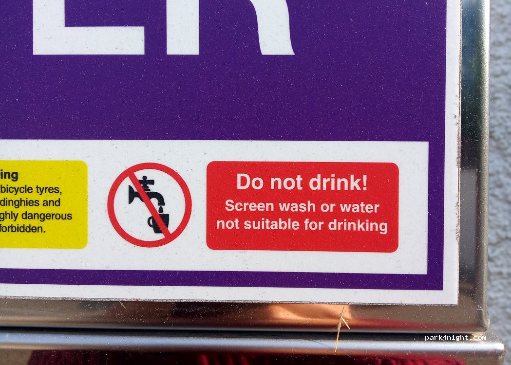 Water point available at the service station. New Revolution self service washing machines and drier only takes contactless payment.