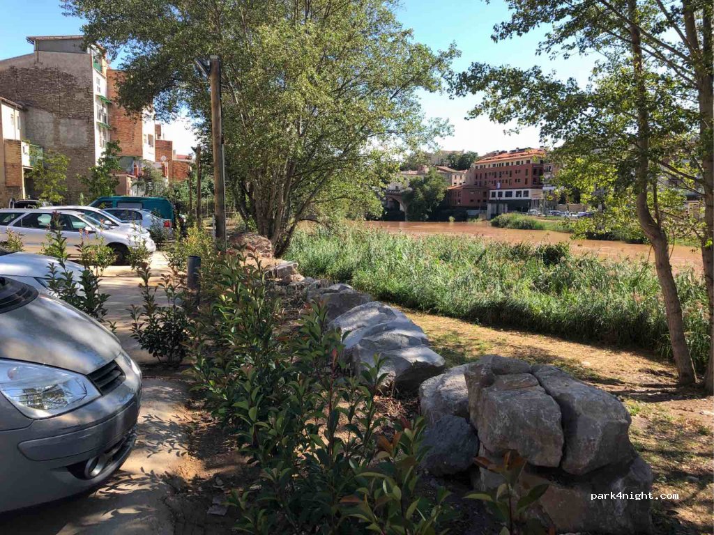 It is a public car park on the banks of the Llobregat with a warning of “attention to the floods”, I suppose they will do it to heal in Health because during my stay the level was very low and there was no danger. It is in the same town, a short distance (about 5 minutes walk) from the town hall square. All shops in the town are 5 minutes walk. It is a place to spend the night or a rest day. There is a source of drinking water at the entrance of the parking