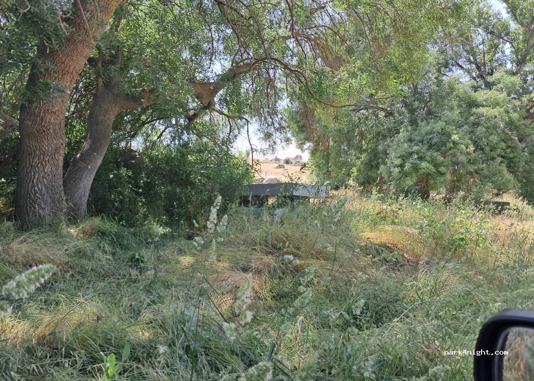 Loin de la ville mais super lieu ombragé et calme. Nombreuses places.