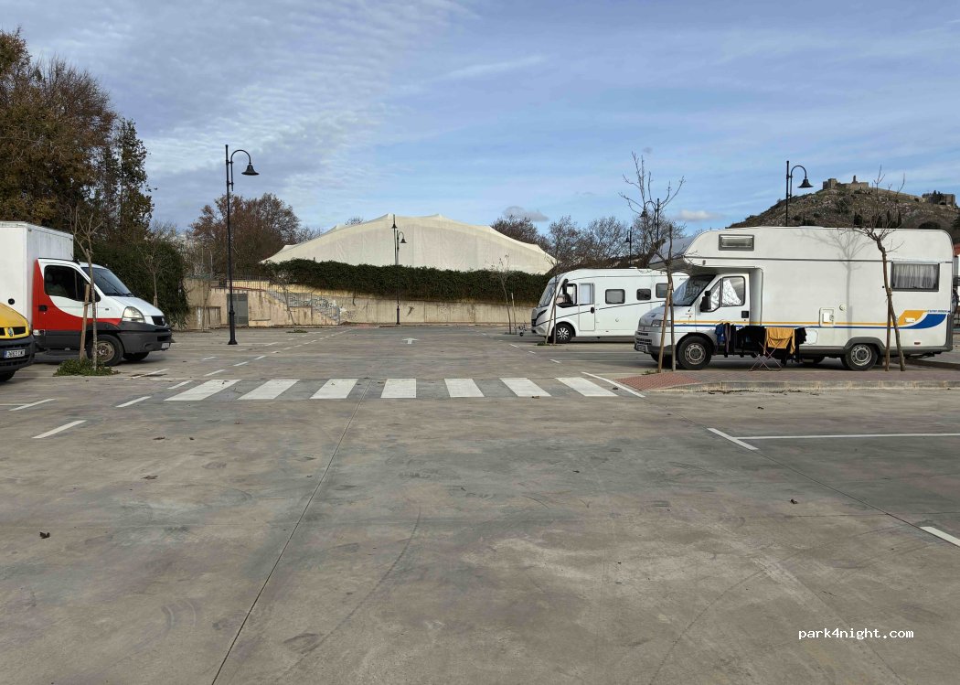 Lugar tranquilo para pernoctar, pero no es bonito. Poca sombra pero está muy cerca del centro. Es el recinto ferial y hay casitas alrededor. Buen sitio para ir de ruta y visitar lugares cercanos. No tiene servicios. Siendo gratis se puede salir a cenar y gastar algo en el pueblo.
