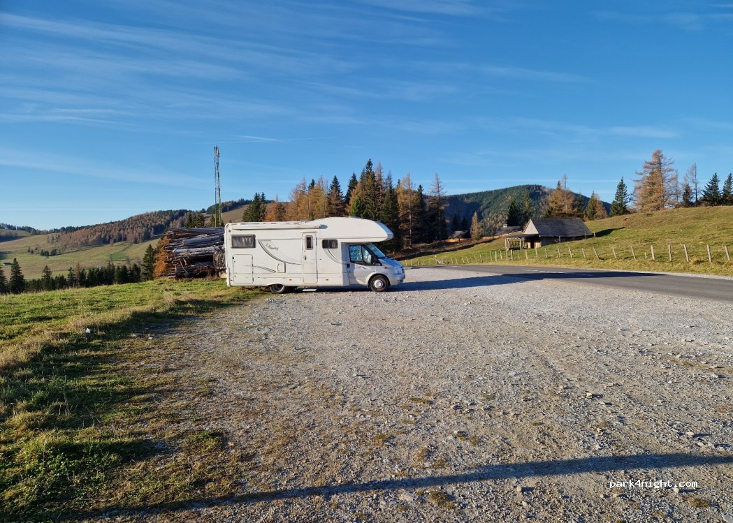 Perfekter Spot mitten auf der Alm. Wir standen hier 2 Nächte, überall im Ort sind Schilder mit „Campen/Zelten verboten“ verteilt, außer hier. Von hier gehen zahlreiche Wanderungen los. Die Kühe haben uns nicht weiter gestört. Gasthäuser und Hotels sind in ca. 15/20min fußläufig erreichbar. Tolle Gegend! Wir sind nur dank Park4night auf das Almenland gestoßen. Es lohnt sich!!
