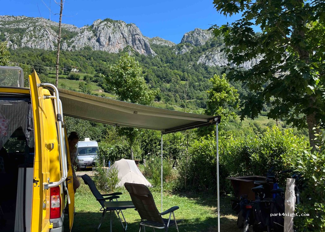 Magnífico camping en la ruta de Los Arrudos, dentro del Parque Natural de Redes. Parcelas en terraza, con agua, electricidad y barbacoa. Dispone de todos los servicios para las autocaravanas. Excelente trato por parte del personal y muy buenos platos en su restaurante, con buena relación calidad/precio. Camping amigo de las mascotas. Sin duda volveremos.