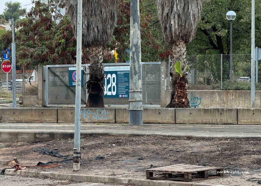 Dejamos aquí la camper todo el día, mientras visitamos Valencia. A un minuto está la estación del tranvía 4, que te deja en el centro de la ciudad. Todo bien, pero no nos quedamos a dormir, por el ruido.
