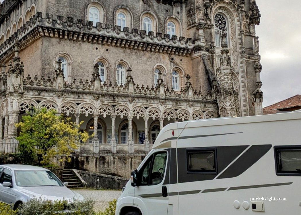 Car park P3 Buçaco, the only one where you can park and spend the night with an AC. The P1 is disabled and also closed at night, and the P2 is small, only for cars. Very quiet night, without problems or noise, and overlooking the palace-hotel of Buçaco.