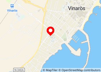 Al llegar a la ciudad, cuartel de la Guardia Civil y calle a la derecha,y despues izquierda,justo al lado del hotel RH Vinaros Aura,,, pero por dentro de sus calles.En la esquina hay un bar terraza llamado Nirvana.Perfecto para aparcar en pleno agosto y lavar ropa en ruta
