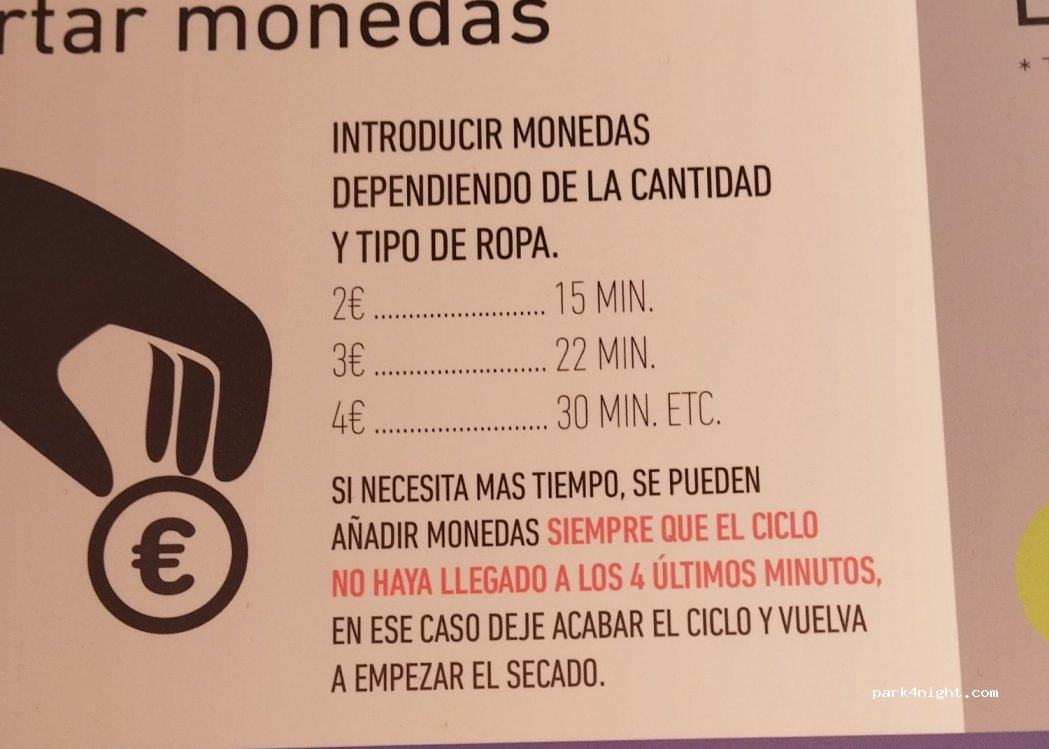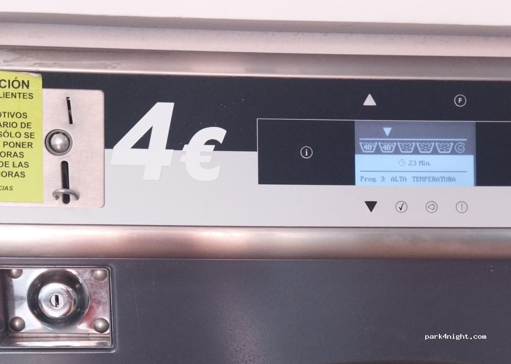 Hier gibt es 3 Waschmaschinen (2 x 12kg und 1 x 16kg) und 2 Trockner (18kg). Die Waschstation ist sauber und es gibt einen Wechselgeldautomaten. Nur 1€ Münzen. Öffnungszeiten: 8 Uhr - 21:30 Uhr.