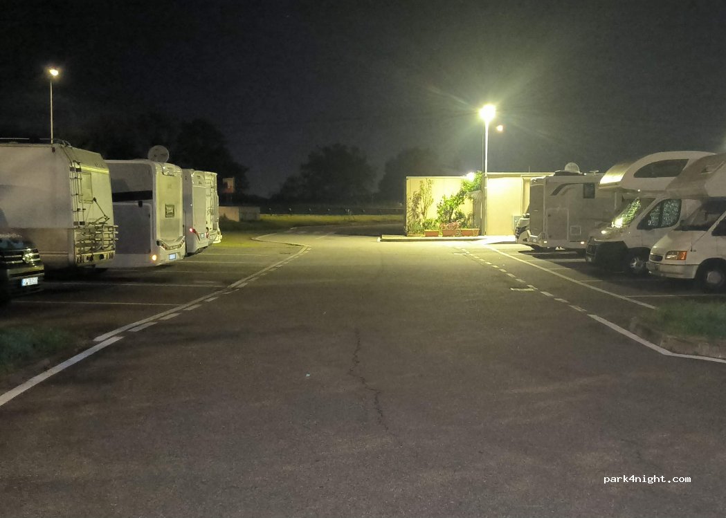 Located on the outskirts of the town of Magenta just off the SP128 and SP11R. You will find spaces for several campers in a dedicated parking area within the grounds of a camping accessories supermarket - Camping Sport Magenta. There is a homemade black and grey drain with a hose connected to a tap for clean drinking water. Bins are also provided. The shop is open daily but closes for an extended lunch break between 12:30 and 14:30.
