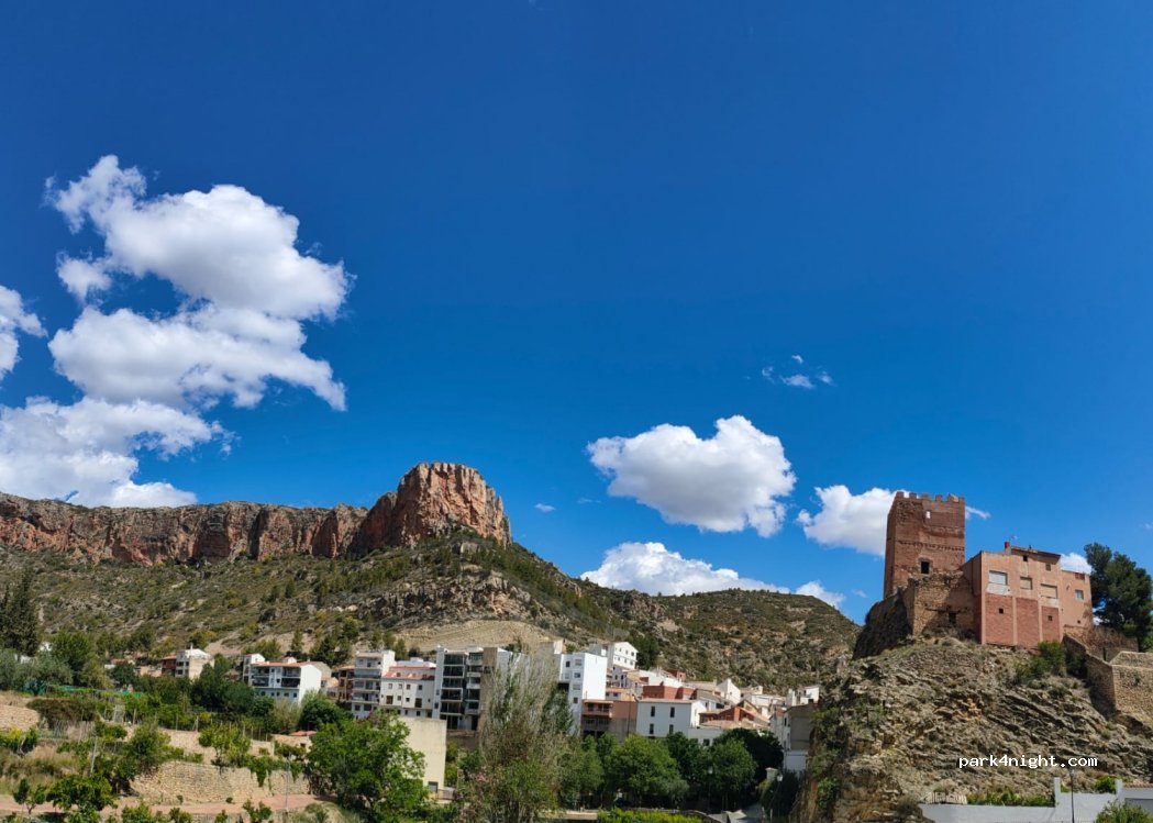 Rellano junto al arroyo, al lado del pueblo y en el inicio de varias rutas de senderismo. A100 m del punto de interés geológico "El Anticlinal". Espacio para 5-6 autocaravanas