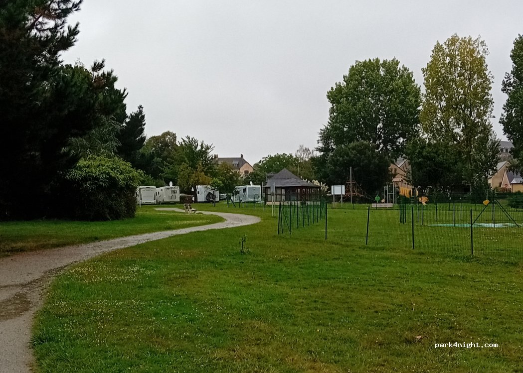 Calme absolu la nuitée, animé surtout en fin de journée où les familles viennent se promener dans cet espace de verdure. Possibilité de déjeûner dehors sur la zone herbeuse le long du parking CC goudronné. Seul bémol, la quantité de chiens dont certains "engraissent" la pelouse par l'incivilité de leurs "maîtres, dommage ! Très bonne réception des réseaux. Boulangerie et plus à 300 mètres.