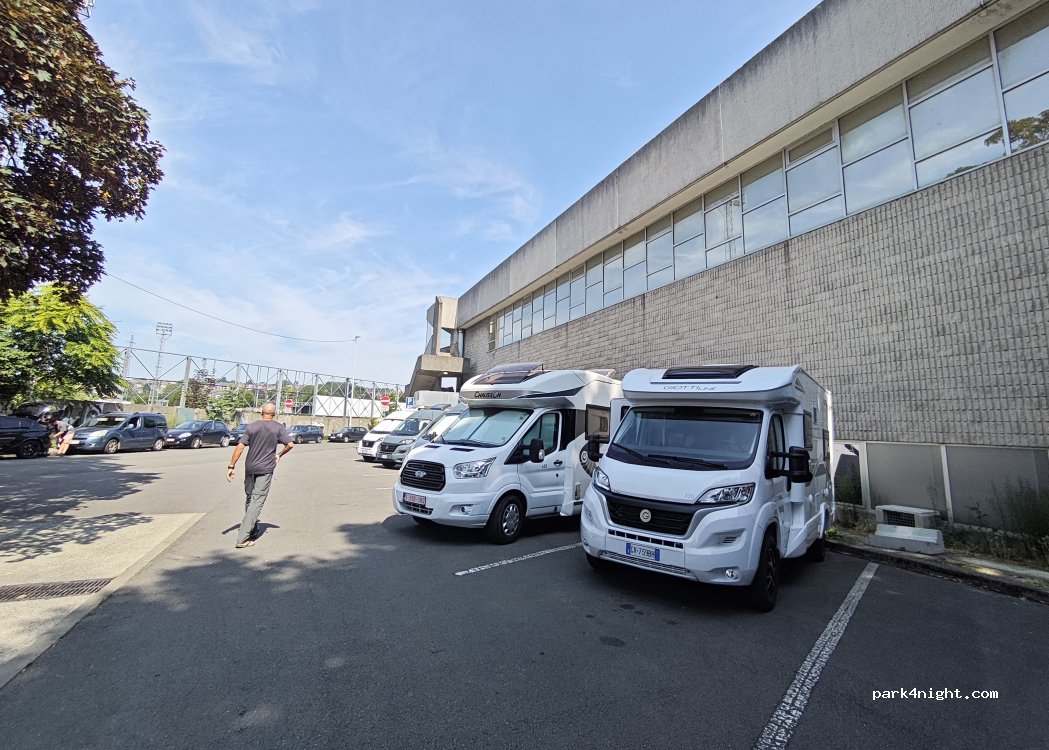 Emplacement proche du centre ville. Gratuit,parking un peu en pente, on a calé, à côté d’une salle de sport, un peu de passage, bien pour un arrêt une nuit