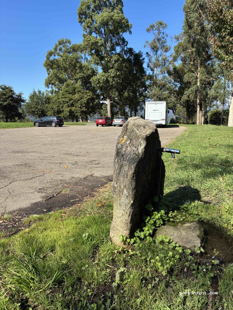 bastantes coches entrando y saliendo por la noche, al estar apartado de la ciudad algunos aprovechan para beber. Por la mañana mucha gente paseando el perro, nada de privacidad. Como dicen algunos, mejor para parar y comer que para pernoctar. Hay una fuente donde el agua sale demasiado a presión.