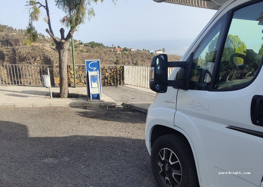 Un agradecimiento al ayuntamiento de Tijarafe por ese servicio de descargas de agua grises y negras con agua potable gratuita. El aparcamiento del pueblo cubierto más arriba ideal para ir a hacer la compra y visitar ese bonito pueblo.