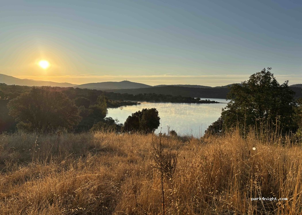 Lugar cómodo,cubos al lado,sería mucho mejor si hubiera sitios con sombra,por el día no se puede estar a no ser que estes en con el aire acondicionado o bañándote en el lago,opción muy recomendable.zona de pesca,paseos,piraguas y caballos.A pocos minutos andando puedes disfrutar de ellos,se dejan tocar. Pasamos una noche,lugar bonito,tranquilo y con un amanecer espectacular.