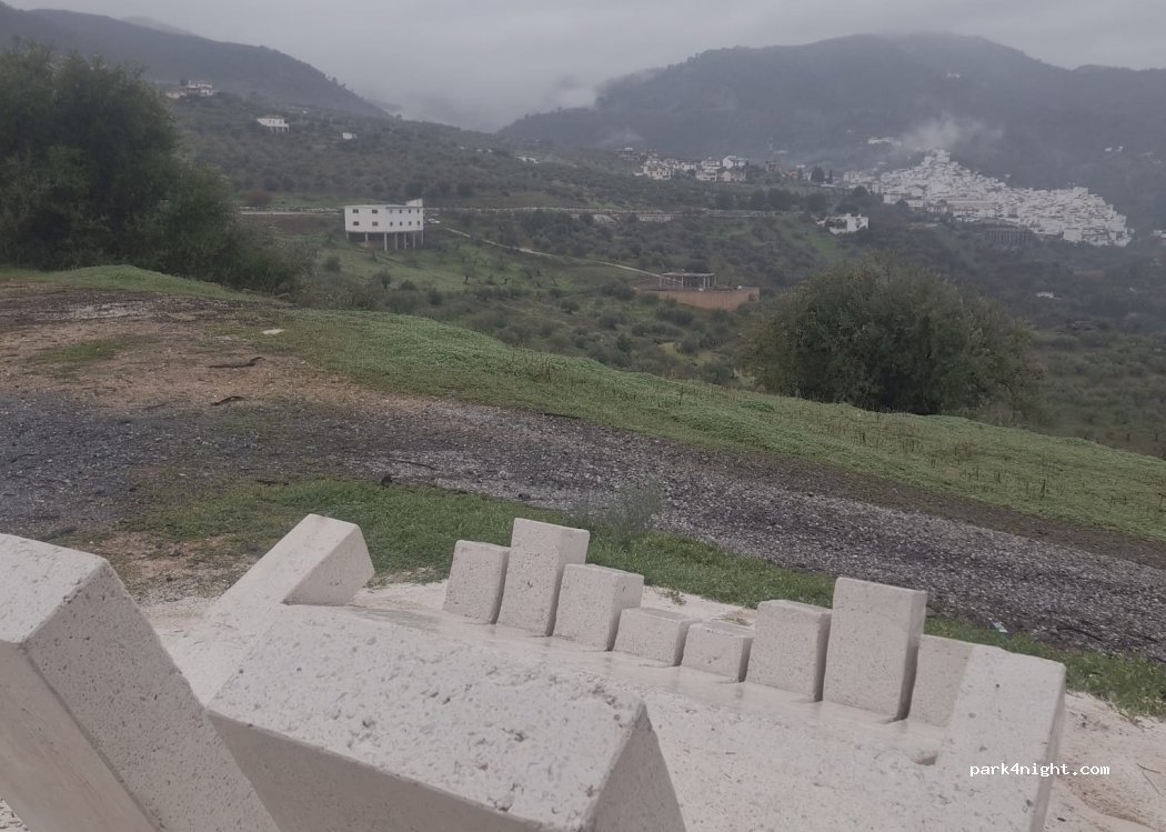 Rest area with tables, trees and offset from the road (not very busy). Nice panoramic view of Tolox and its surroundings (cannot be seen in the photos because the weather was not nice ...). No services but source nearby! About ten places horizontally.