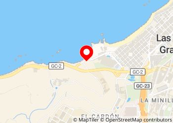 2 min walk to the Las Canteras beach and plenty bar/cafes/restaurants. If you are here to surf this is right by La Cicer. Plenty of surf schools/hire in the area. Right next to big shopping mall with Carrefour supermarket. With the €2.50/day (€25/month) fair are included 2 bus rides into town. Bus stops just across the road. Not sure about motorhome situation. I see Transit size vans parked here.