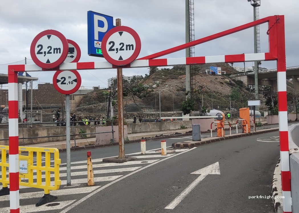 Aparcamiento en el que se puede pernoctar, súper cerca de la playa de las canteras, por el precio de 24 horas (2,5€) incluye billete de guagua para desplazarse al centro de la ciudad.