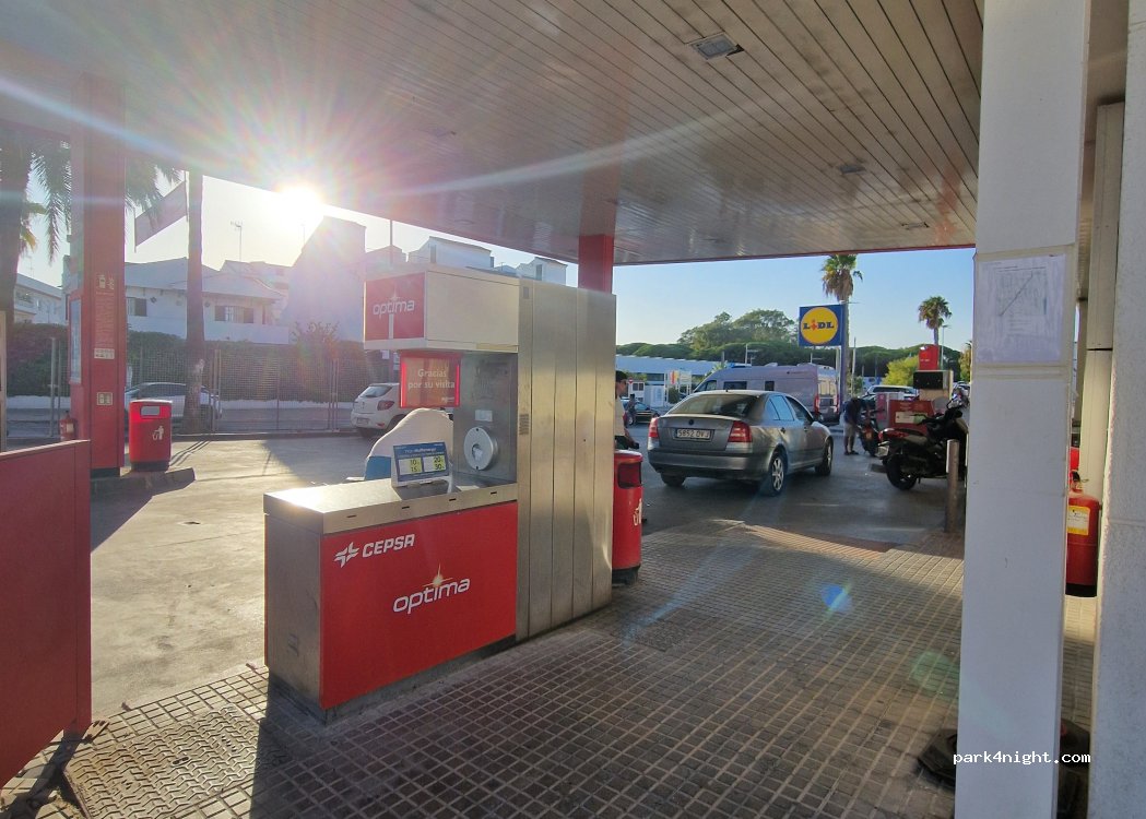 Wasser an der Cepsa-Tankstelle.