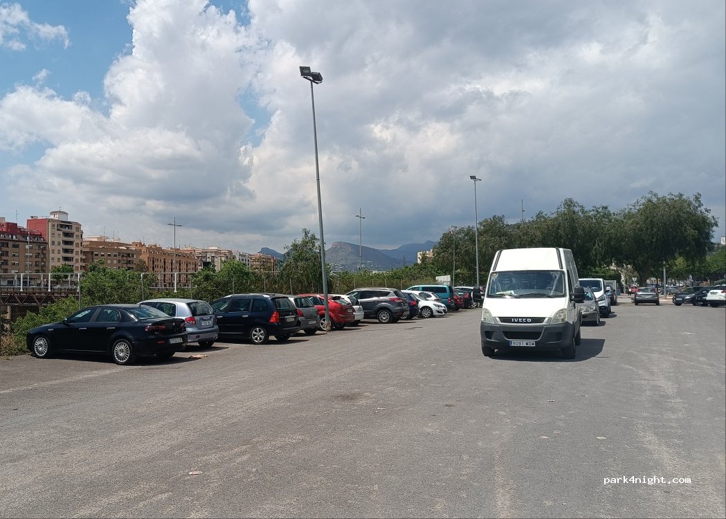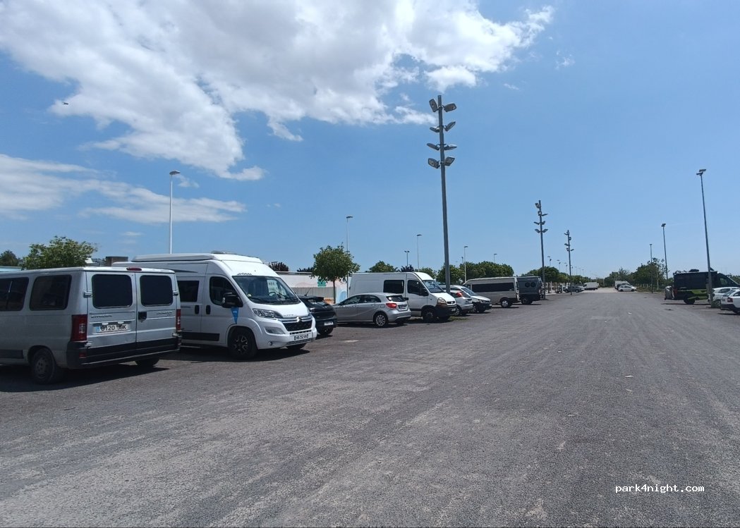 Als Tagesparkplatz riesig, eben, viele Schulkinder und Eltern kommen vorbei sieht sehr sicher aus. Auch die Polizei patroulliert. Habe beim herausfahren ein verstecktes Schild gesehen, nachdem das Parken von Womos in Sagunt generell verboten sei?