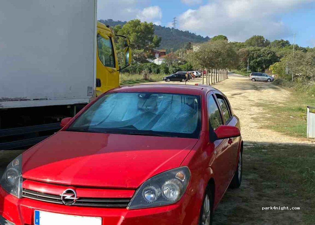 Aire de stationnement non goudronnée. Loin du centre, très calme et juste à côté de la montagne Sant Ramon. Avertissement! En pente, difficile de positionner le véhicule.