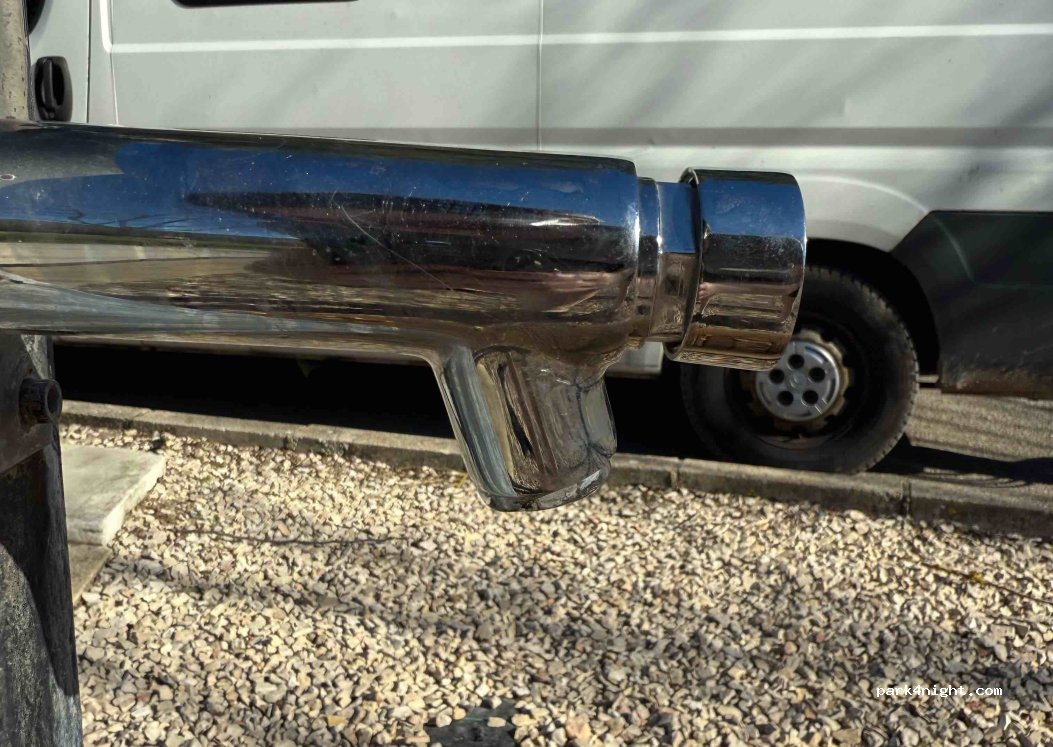 À côté d’un grand parking dédié aux campings-cars. Avec poubelles de tri juste à côté. Accès à l’eau très facile et efficace.